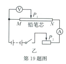 来判断电阻的大小。(3分)(2)利用图甲中的实验器材,再提供一条导线,在不损坏铅笔芯的条件下,设计一个实验方案,探究铅笔芯电阻大小与横截面积的关系(写出简要的实验步骤):