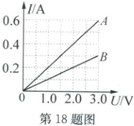 18. (2025·三门)如图是分别通过$A$、$B$两个导体的电流与其两端电压的关系图。