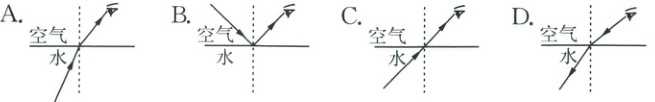4. (2024·舟山定海)小舟在公园湖中看到水中的石头,下图能正确反映他看到水中“石头”的光路图是(