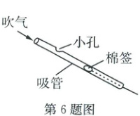 6. (2025·永康)如图所示是用吸管和棉签制作的“鸟鸣器”,从管口吹气,能发出类似鸟叫的声音。下列说法不正确的是(
