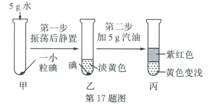 17. (2025·嵊州)为了探究同种溶质在不同溶剂中的溶解性,小明设计了如图实验进行探究。