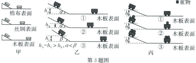 (2)接触面的粗糙程度以及小车所在的高度相同时,斜面的倾角角度越大