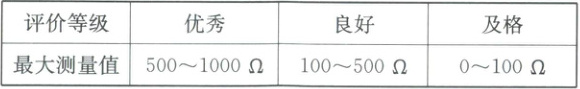 改进电路如图乙,其中 $ R_{定} $ 的阻值恒为 $ 10 \, \Omega $,给图丙刻度盘上的刻度线标上相对应的电阻值。对照评价量表的部分内容,此“电阻表”的评价等级为
