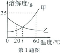 1. (2025·永康)甲、乙两种固体物质的溶解度曲线如图所示,据图判断下列说法正确的是 (