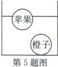 5. (2025·德清)如图,将一个苹果和橙子放入水中,苹果漂浮,橙子下沉至底部。若苹果的质量、体积和受到的浮力为 $m_{1}$、$V_{1}$和 $F_{1}$,橙子的质量、体积和受到的浮力为 $m_{2}$、$V_{2}$和 $F_{2}$。下列说法正确的是 (