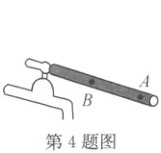 4. 如图所示,维修人员用一根长铁管套在长期不用且生锈的水龙头上,用同样大小的力作用在长铁管 A 处比 B 处更易打开水龙头。这现象说明与力的作用效果有关的是力的(