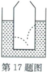17. 取一个空塑料瓶,分别在瓶子侧壁的不同高度处扎两个小孔,把它放在水槽中,如图所示。该实验研究的问题是液体内部压强与