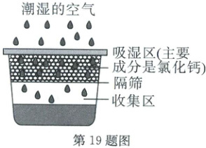 19. 如图所示是家用除湿盒,主要成分是氯化钙。小科查阅资料后得知氯化钙可以吸收空气中的水分。请根据氯化钙的溶解度表回答下列问题。