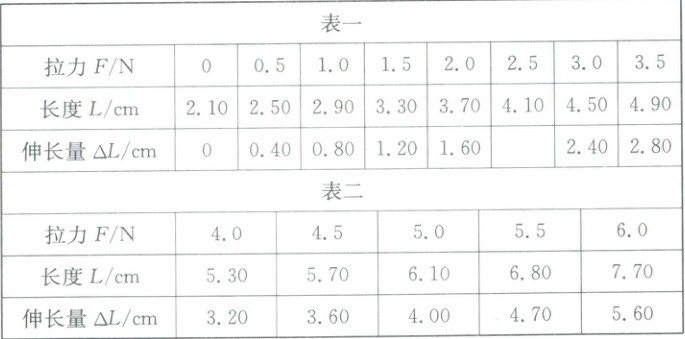 (2) 从表一中数据可以看出,弹簧伸长量 ΔL 和受到钩码的拉力 F 的关系是