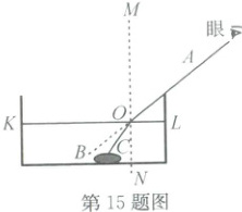 15. (2025·永康)如图所示是“观看水中的硬币”,把一枚硬币固定在空杯的底部,找一个角度使你刚好看不到硬币,保持眼睛和杯子的位置不变,在同学逐渐把水加入到杯中的过程中,硬币又重新被你看到,对该实验分析正确的是(
