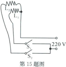 15.D 解析:由题图可知,开关$S_1$控制$L_1$,开关$S_2$控制$L_2$。