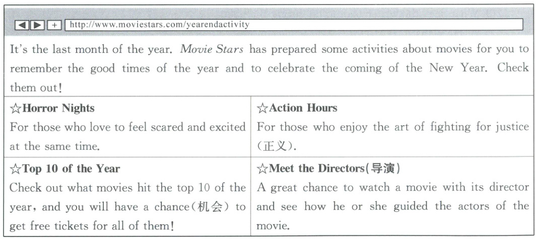 ( )18. What is the purpose(目的) of Movie Stars’ activities?