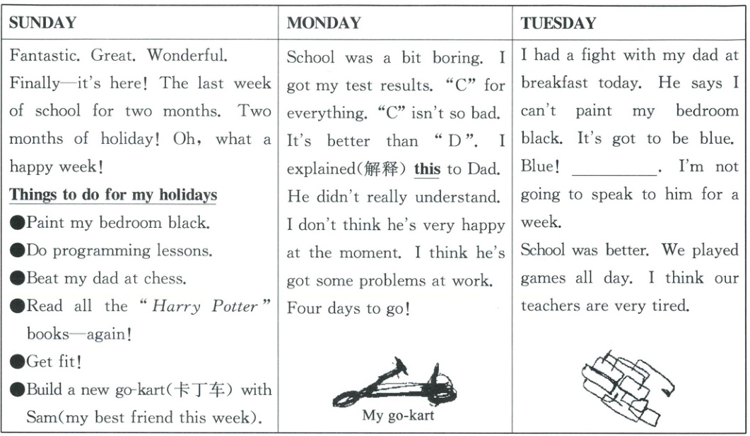 ( )21. Why did the writer have a fight with his dad on Tuesday?