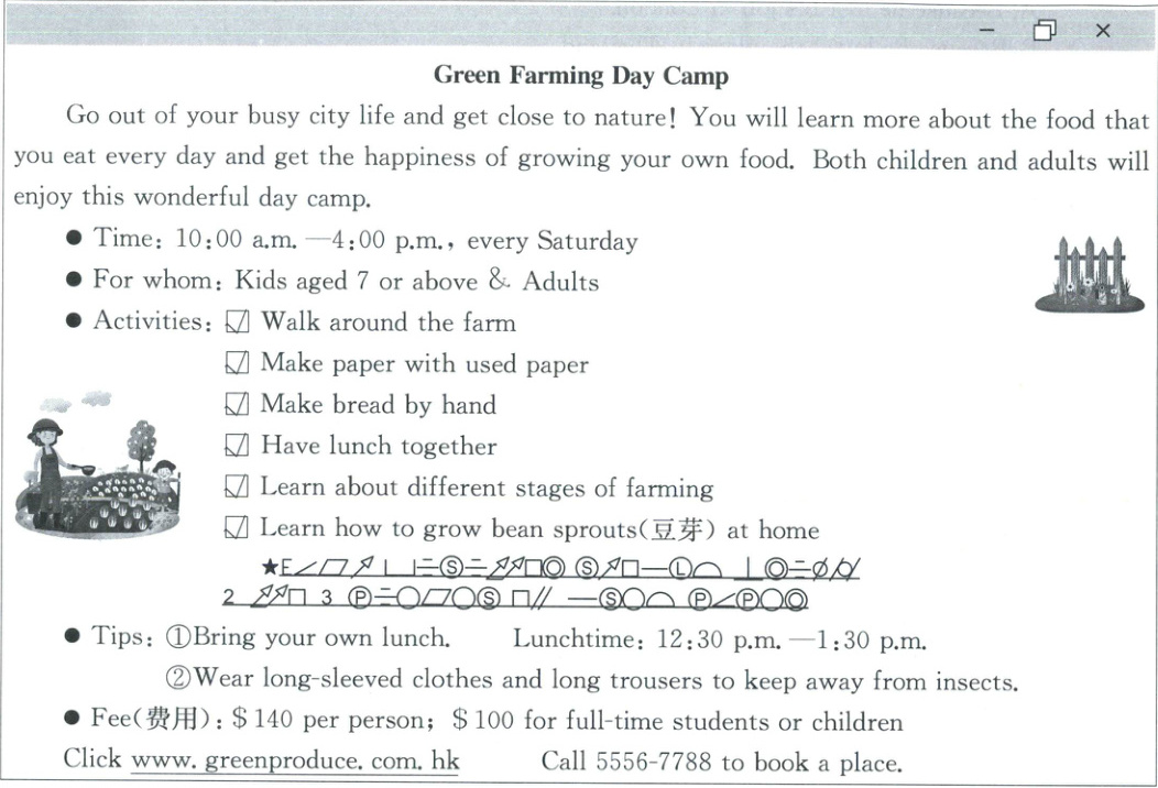 ( )27. What do we know about Green Farming Day Camp?