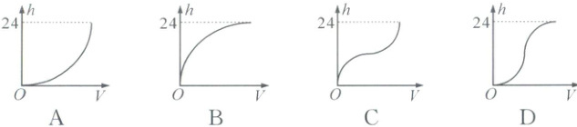 6. 如图是一个高为 24 的容器,现向容器匀速注水,下列图象中能大致反映容器中水的深度$(h)$与注水量$(V)$关系的是 (