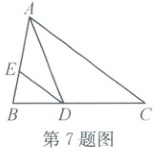 7. 如图,$AD$ 是 $\triangle ABC$ 的角平分线,$AC// DE$,交 $AB$ 于点 $E$。若 $\angle BED = 64°$,则 $\angle ADE$ 的度数是 (