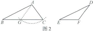 以点A为圆心,AC长为半径画弧交BC于点G。