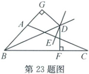 23. (8分)(2024·长兴)如图,在△ABC中,∠ABC的平分线与AC的垂直平分线相交于点D,过点D作DF⊥BC,DG⊥AB,垂足分别为F,G。