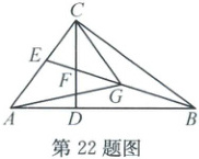 22. (8分)(2025·杭州钱塘)如图,在△ABC中,∠ACB=90°,CD⊥AB于点D,BE平分∠ABC交CD于点F。