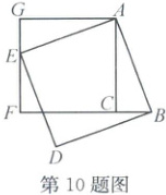 10. 如图,在 $ Rt \triangle ABC $ 中, $ \angle ACB = 90^{\circ} $,以 $ AB,AC $ 为边作正方形,点 $ E $ 落在 $ FG $ 上。记正方形 $ ABDE $ 的面积为 $ S_1 $, $ \triangle AEG $ 的面积为 $ S_2 $,设 $ BF = x $, $ EF = y $。若 $ S_1 = 6S_2 $,则下列代数式的值不变的是(