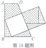 16. 如图是一张四边形纸片 $ ABCD $,其中 $ \angle A = \angle B = 90^{\circ} $, $ AB = 12 $, $ BC - AD = 5 $。现将其分割为 4 块,再拼成两个正方形,则正方形的边长为