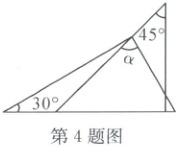 4. (2024·绍兴上虞)将一副三角板按如图所示方式叠放在一起,则∠α的度数是 (