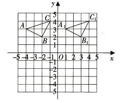 (1)请作出 $ \triangle ABC $ 向右平移 $ 5 $ 个单位长度后得到的 $ \triangle A_1B_1C_1 $。(其中点 $ A_1 $,$ B_1 $,$ C_1 $ 分别是点 $ A $,$ B $,$ C $ 的对应点,不写画法)