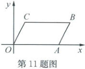 11. (2024·兰溪)如图,在直角坐标系中,点 $ C $ 的坐标为 $ (1,2) $,把线段 $ OC $ 沿 $ x $ 轴正方向移动 $ 4 $ 个单位长度,得到四边形 $ OABC $。若点 $ D $ 在 $ x $ 轴上,当 $ S_{\triangle DCB} = 2S_{\triangle DAB} $ 时,点 $ D $ 的坐标为