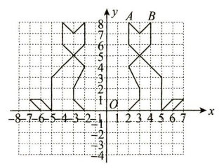 (1)请在这个直角坐标系中再画一只“小猫”,使得新画的“小猫”与原图案关于 $ y $ 轴对称。