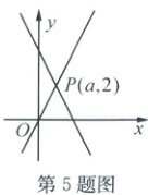 5.(2024·宁波鄞州)如图,直线 $ y_1 = 2x $ 与直线 $ y_2 = kx + b $($ k \neq 0 $)相交于点 $ P(a, 2) $,则关于 $ x $ 的不等式 $ 2x \leq kx + b $ 的解集是(