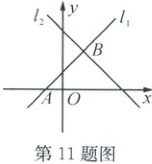 11.(2025·宁波海曙)如图,直线 $ l_1: y = x + 1 $ 与 $ x $ 轴交于点 $ A $,与直线 $ l_2: y = -x + 3 $ 交于点 $ B $,点 $ C $ 为 $ x $ 轴上的一点,若 $ \triangle ABC $ 为直角三角形,则点 $ C $ 的坐标为