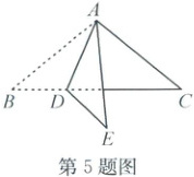 5. (2024·嘉兴)如图,在$\triangle ABC$中,$AB = AC$,$\angle B = 40^{\circ}$,$D$是$BC$上一动点,将$\triangle ABD$沿$AD$折叠得到$\triangle ADE$,当$\triangle ADE$与$\triangle ABC$重叠部分是直角三角形时,$\angle BAD$的度数为