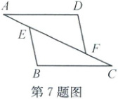 7. (2024·绍兴上虞)如图,已知点E,F在AC上,AE=CF,BE//DF,添加一个条件,使△ADF≌△CBE。你所添加的条件是
