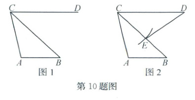 10. (2025·东阳)如图1,在△ABC中,过点C作CD//AB,且CD=BC,小聪与小慧尝试用尺规作△ECD≌△ABC,E为边BC上一点。