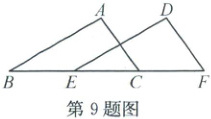 9. (2025·诸暨)如图,已知△ABC≌△DEF,点B,E,C,F在同一直线上。