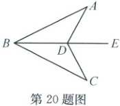 20. (6 分)如图,已知$BE$平分$\angle ABC$,$D$为$BE$上一点,连结$AD$,$CD$。