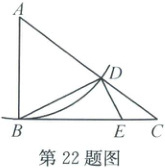 如图,在 $ \triangle ABC $ 中,$ \angle ABC = 90^{\circ} $。以点 $ A $ 为圆心,$ AB $ 为半径画弧,交 $ AC $ 于点 $ D $,连结 $ BD $。过点 $ D $ 作 $ BD $ 的垂线,交 $ BC $ 于点 $ E $。观察这个图形,同学们纷纷提出自己的想法。