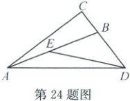 24. (12 分)如图,在 $ \triangle ABC $ 中,$ \angle C = 90^{\circ} $,$ 60^{\circ} < \angle ABC < 90^{\circ} $。点 $ E $ 在边 $ AB $ 上,点 $ D $ 在 $ CB $ 延长线,且满足 $ BD = BE $。连结 $ DE,AD $。已知 $ \angle CAD = \angle BED $。