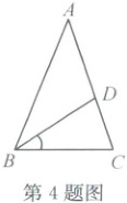 4. 如图,在 $ \triangle ABC $ 中,$ AB = AC $,$ BD $ 平分 $ \angle ABC $,若 $ \angle A = 40^{\circ} $,则 $ \angle DBC $ 的度数为(