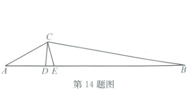 14. 如图,在 $ \triangle ABC $ 中,点 $ D $,$ E $ 在 $ AB $ 上,$ AC = AE $,$ BC = BD $,若 $ \angle DCE = 20^{\circ} $,则 $ \angle ACB $ 的度数为