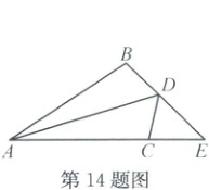 14. (2025·衢州柯城)如图,△ABD≌△ACD,BD,AC的延长线交于点E。若AE=7,AB=5,BE=4,则△CDE的周长为