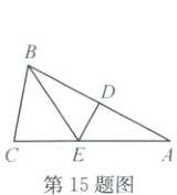15. (2024·湖州吴兴)如图,在△ABC中,边AB的垂直平分线交AB于点D,交AC于点E,且CE=5 cm,BE=8 cm,则AC的长为