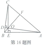 16. (2024·奉化、象山、宁海)如图,在△ABC中,过点A作AD⊥BC于点D,过点C作CE⊥AB于点E,设AD与CE交于点O,连结BO并延长交AC于点F。若AB=5,BC=4,AC=6,则CE∶AD∶BF=