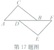 17.证明:因为DE//CB,所以∠ABC=∠FDE。因为AD=BF,所以AD + DB = FB + BD,即AB = FD。在△ABC和△FDE中,因为$\begin{cases}AB = FD,\\∠ABC = ∠FDE,\\BC = DE,\end{cases}$所以△ABC≌△FDE(SAS)。