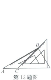 13. 一副三角板如图所示叠放在一起,则图中$\angle ABC =$