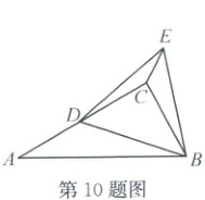 10. 如图,在$Rt\triangle ABC$中,$\angle ACB = 90^{\circ}$,$\angle A = 30^{\circ}$,$AB = 4$,$D$是直角边 $AC$ 上的一个动点,连结 $BD$,以 $BD$ 为边向外作等边$\triangle BDE$,连结 $CE$,在点 $D$ 运动的过程中,线段 $CE$ 的最小值为(