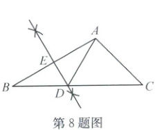 8. 小吴在数学实践课上用直尺和圆规作图(如图所示)。已知$AC = 5$,$BC = 12$,根据尺规作图痕迹,可求得$\triangle ACD$的周长是(