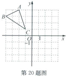 20. (8 分)如图,在边长为 $1$ 的小正方形网格中建立平面直角坐标系,已知$\triangle ABC$是格点三角形(三角形的三个顶点都在正方形网格的顶点上)。
