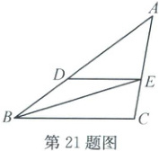 21. (8 分)如图,在$\triangle ABC$中,$BE$ 平分$\angle ABC$,$DE// BC$。
