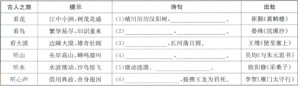2. 古人之旅,旅于景,旅于心。请根据表格内容补充古诗文名句。(8 分)